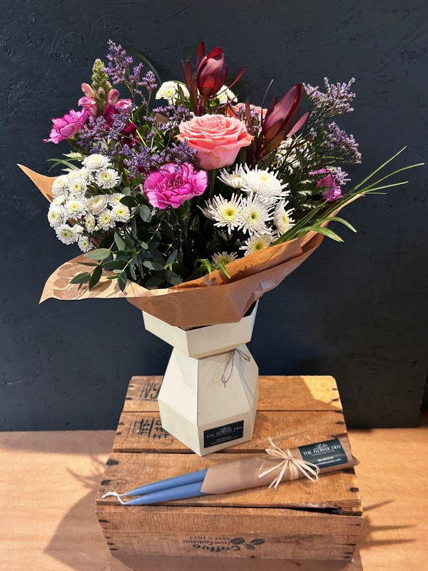 This month only, at The Flower Den, enjoy our cosy Bouquet & Candle Bundle.